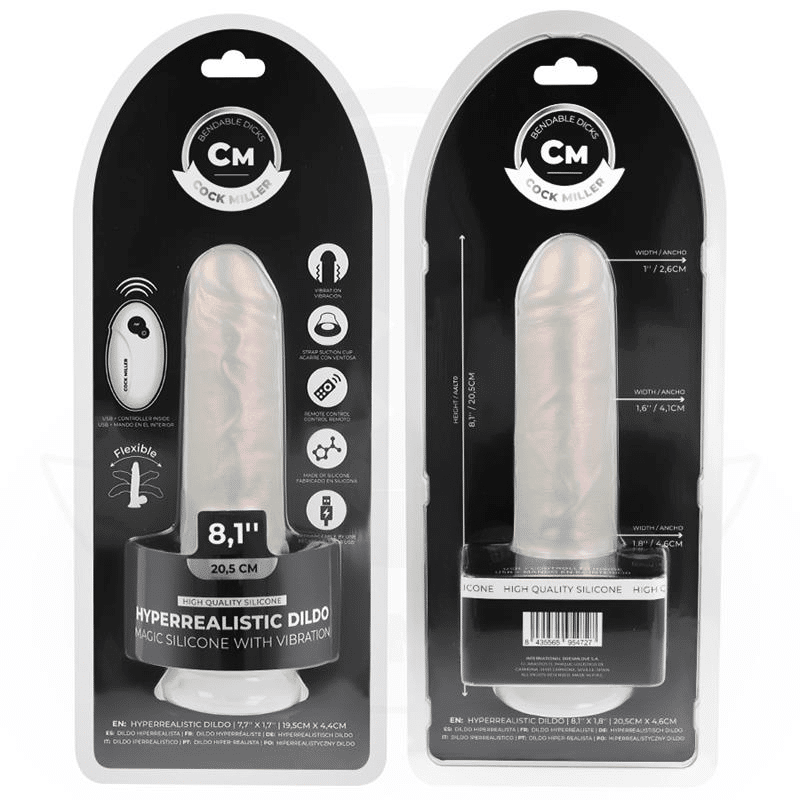 El COCK MILLER 20.5 cm es una pieza única en el mercado de los juguetes eróticos, que combina tecnología avanzada con un diseño realista. Con una iluminación interna en silicona, un potente motor de vibración multivelocidad, y control remoto inalámbrico, este dildo está diseñado para ofrecer una experiencia completa tanto a nivel físico como sensorial. Hecho de silicona médica de alta calidad, su forma anatómica, suave al tacto y detallada, ofrece una penetración cómoda y placentera, mientras que la iluminación LED agregará una atmósfera visual excitante durante su uso.